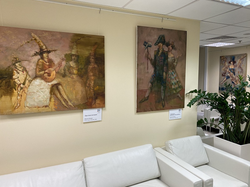В фойе «Геликон - Оперы» открылась выставка картин Шамиля Надрова, погружающая посетителей театра в мир карнавальных фантазий, commedia dell'arte, тонкой импровизации и буффонады.