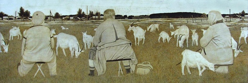 В экспозиции представлены работы, посвященные изображению быта людей, их повседневной жизни, природе.