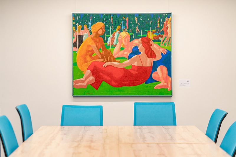 Удар волшебной кисти Азама Атаханова через магическое сочетание цветов вводит нас в пульсирующие бытие картины, заставляет двигаться в ней, становиться её частью, погружаться в запредельное и вечное. Чувство цвета у Атаханова подобно идеальному слуху в музыке – как композитор подбирает ноты, так художник составляет особенную палитру для каждого полотна.